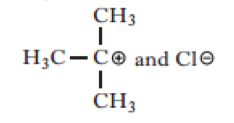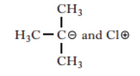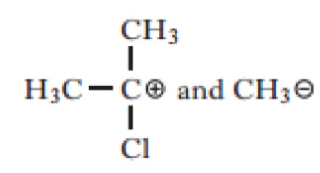 Which of the following would be the most likely products of the heterolytic bond fission of the above compound?