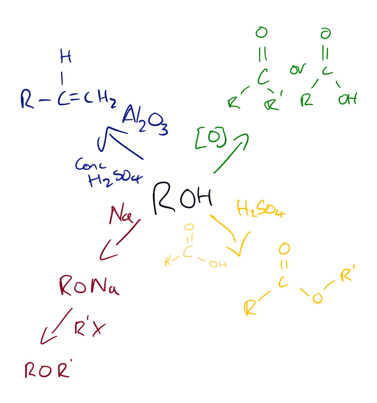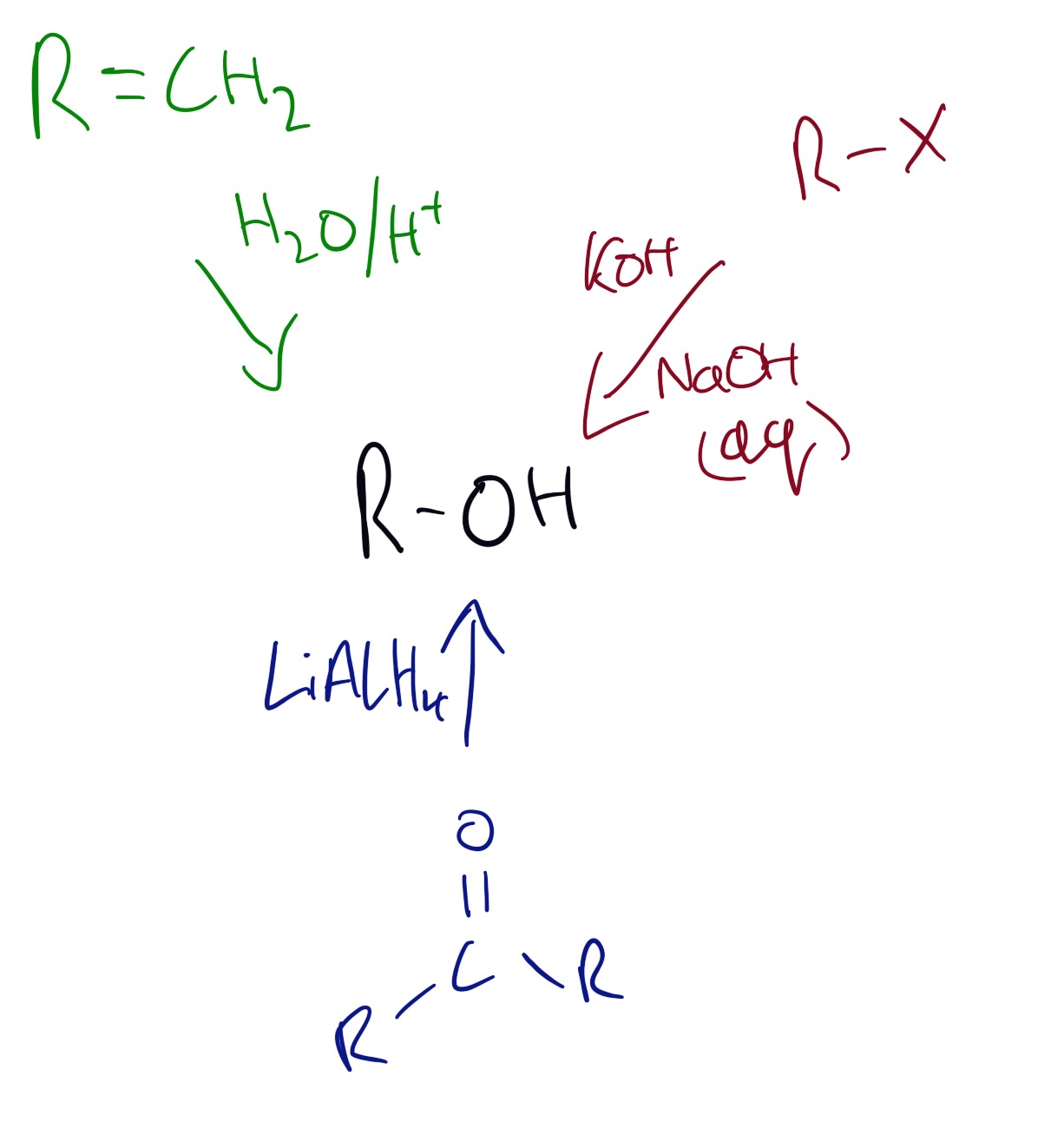 In this section you will learn the synthetic routes used to prepare organic molecules. Some of the reactions will be familiar from Higher and National 5. You will need to know the reaction conditions, reagents as well as some of the reaction mechanisms for the reactions below.