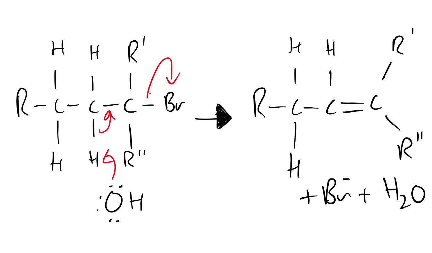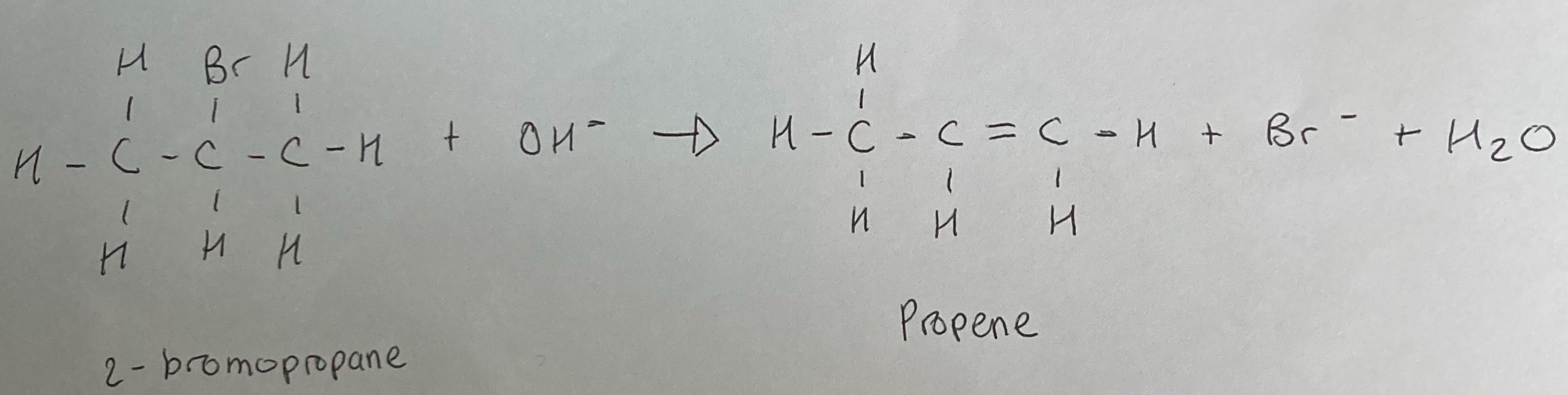 In the formation of the carbon to carbon double bond, the halogen atom and an H atom on an adjacent carbon atom is removed from the haloalkane and not replaced. This reaction is reffered to as a base - induced elimination reaction.