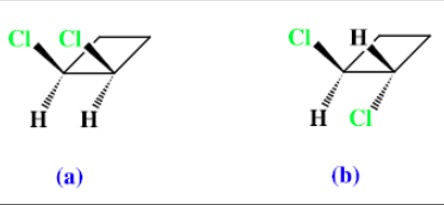 In the diagram above, molecule (a) is known as 'trans-1-2-dichlormethane' and molecule (b) is known as 'cis-1-2-dichlormethane'.