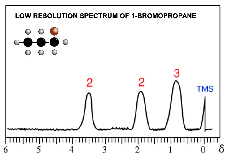 Low resolution nmr gives 1 peak for each environmentally different group of protons.