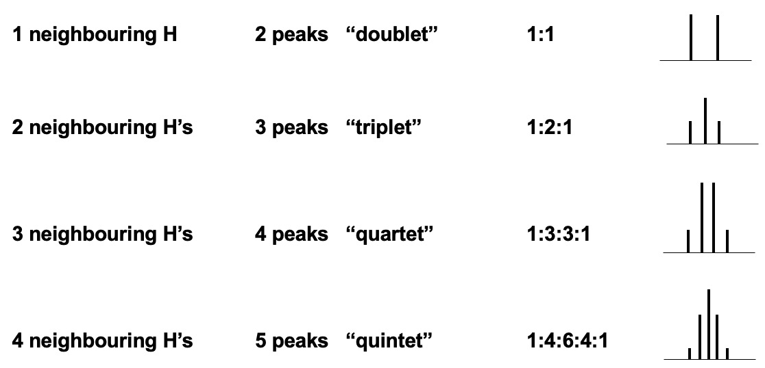 Number of peaks = number of chemically different H's on adjacent atoms + 1.