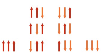 One orientation augments/enhances its field and the other opposes/reduces it. This is done by calculating the various possible combinations of alignment of adjacent protons.