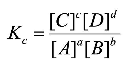 where [A], [B], [C] and [D] are the equilibrium concentrations of A, B, C and D, respectively, and a, b, c and d are the stoichiometric coefficients in a balanced reaction equation.