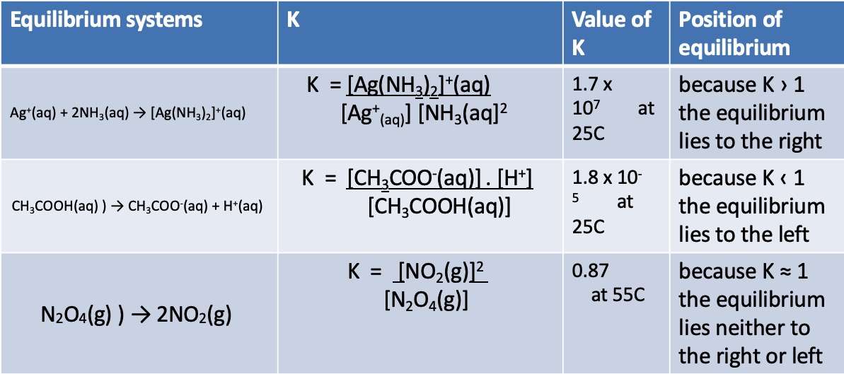 The equilibrium constant (K) characterises the equilibrium composition of the reaction mixture.