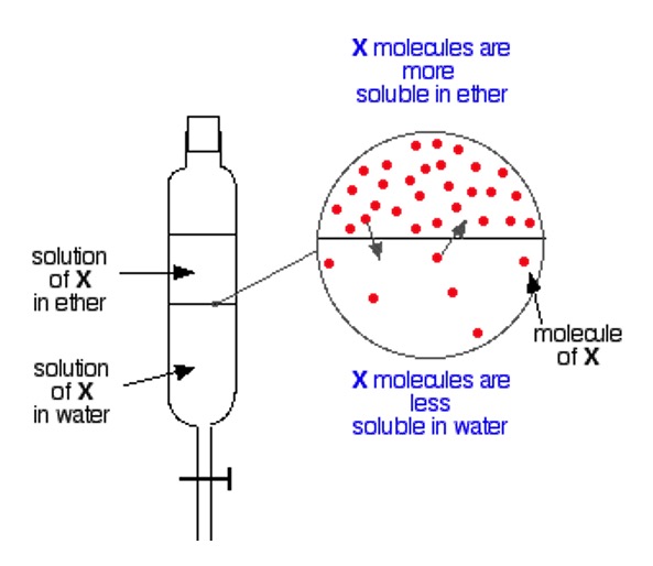 If these two solvents are immiscible liquids (do not mix), then the solute will distribute itself between the two liquids in a different ratio, called the partition coefficient.
