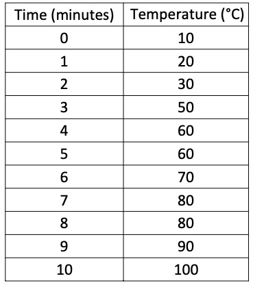 The table below shows how quickly a beaker of water was heated up using a Bunsen Burner.