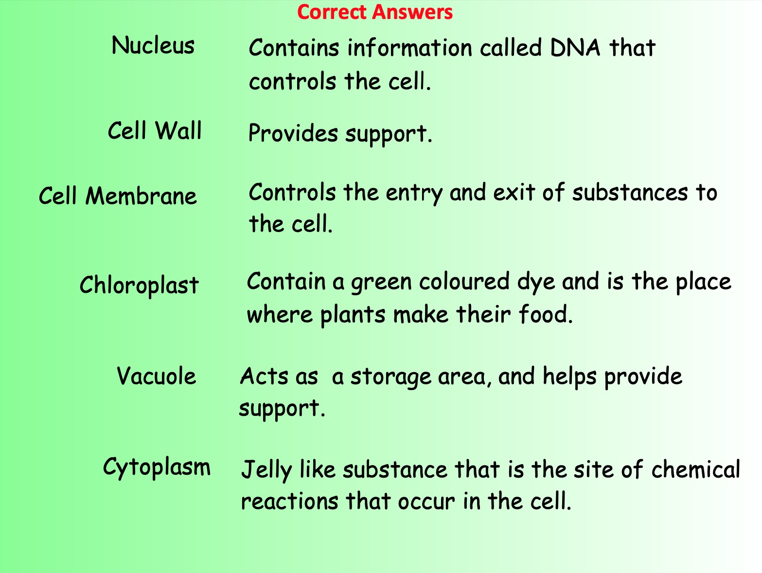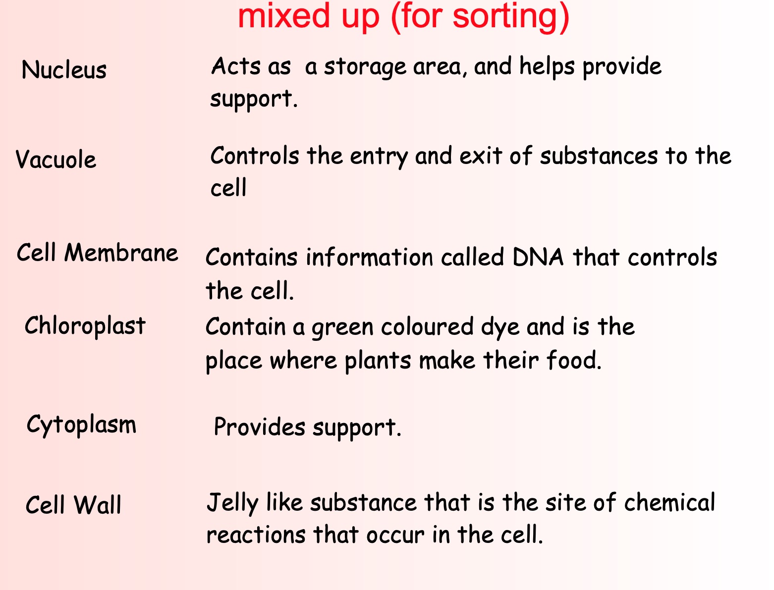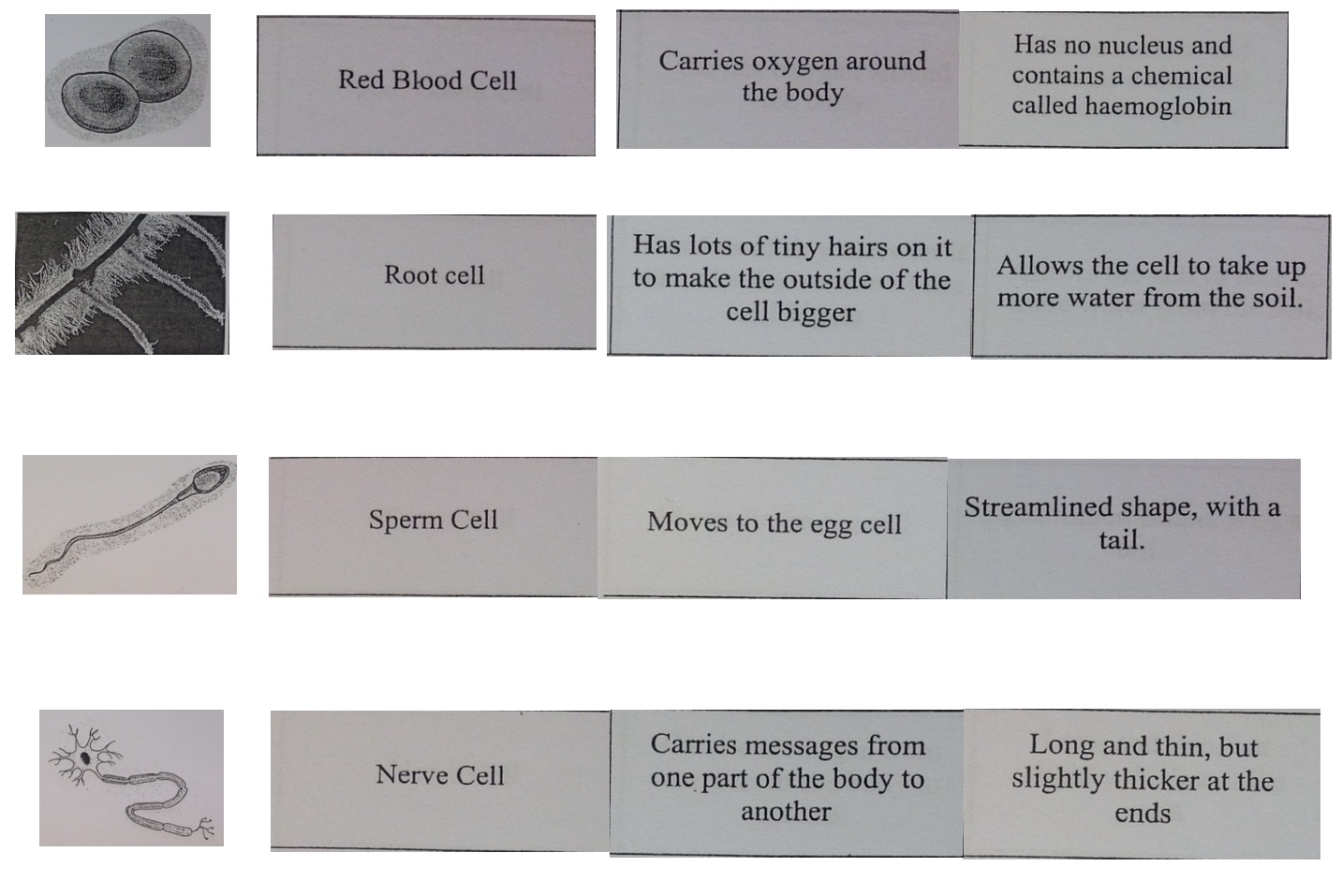 Try to match up the pictures of the cells with their name. Thank about their structure. Does this help them to carry out their function?