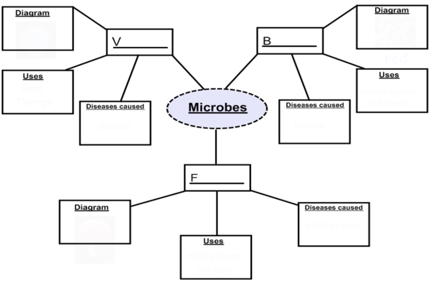 Make sure that you have a copy of the Microbes spider diagram below. Fill it in as you read the following information on microbes.