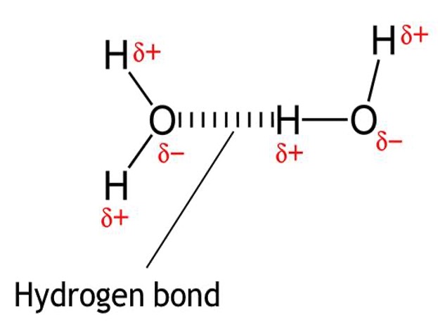 When a highly electronegative element such as nitrogen, oxygen or fluorine is bonded to hydrogen, the hydrogen ends up being slightly positively charged and the electronegative element becomes slightly negatively charged.