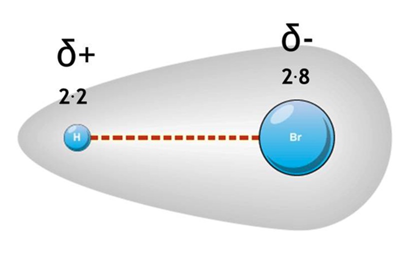 When atoms with different electronegativity values (approximately between 0.5 and 1.6), join together, a polar covalent bond is formed.
