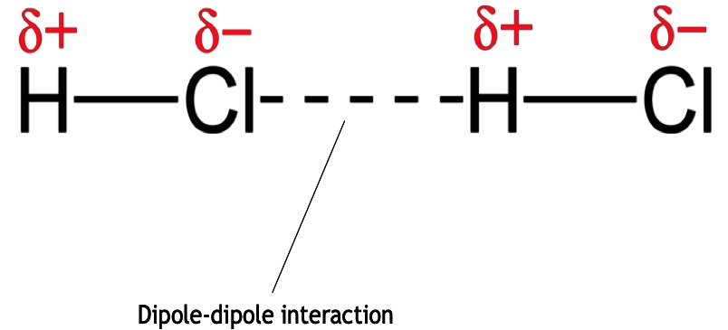 Permanent dipole to dipole interaction is caused via the constant attraction between the δ+ atoms and δ- atoms of neighbouring molecules. A molecule is described as polar if it has a permanent dipole.