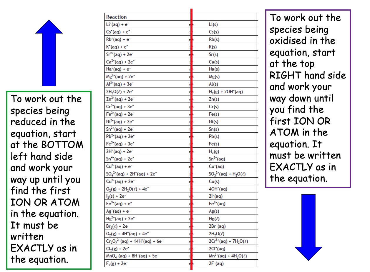 In the periodic table, the strongest reducing agents are in group 1, and the strongest oxidising agents are in group 7.