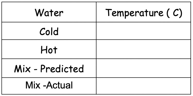 Pour 50ml of cold water into a small beaker, and50ml of hot water into another small beaker.