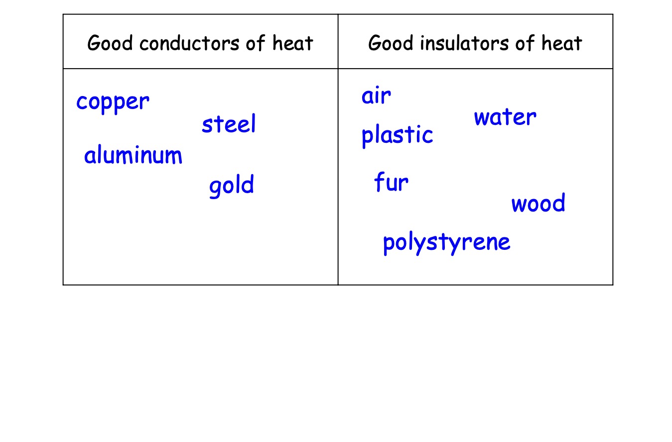 ______ are good at letting heat through, wood and _____ are not so good.