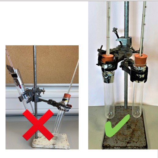 Clamp the boiling tubes at the same height and distance from the heat lamp (around 25-30 cm).