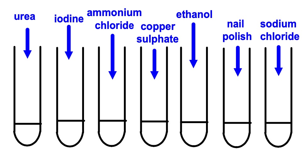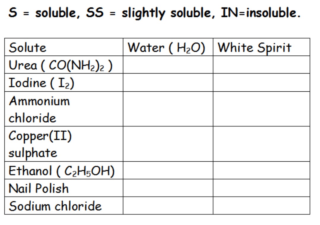 Your teacher will show you the five substances that are in the table below. Decide if they are solids, liquids or gases.