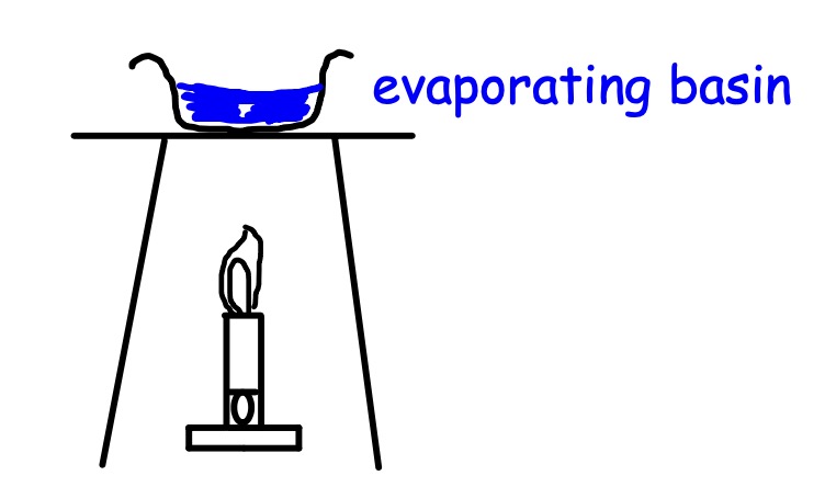 We evaporated the water, it turned into a gas. The blue solute was left behind in the basin.