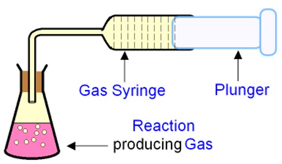 In a reaction where a gas is produced, the gas can be collected and measured at regular time intervals throughout the reaction.