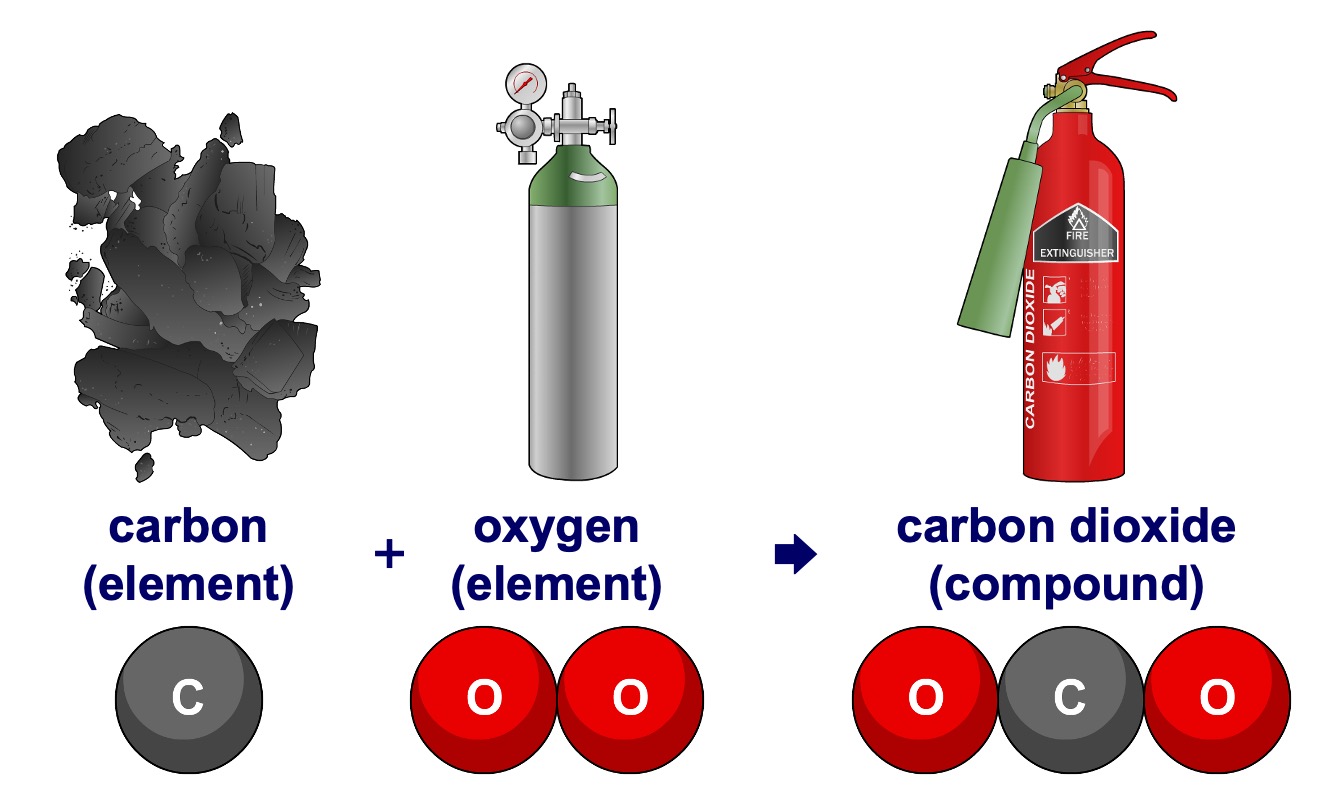 Each element is made up of very tiny particles called atoms, and each element is made up of just one particular type of atom, which is different to the atoms in any other element.