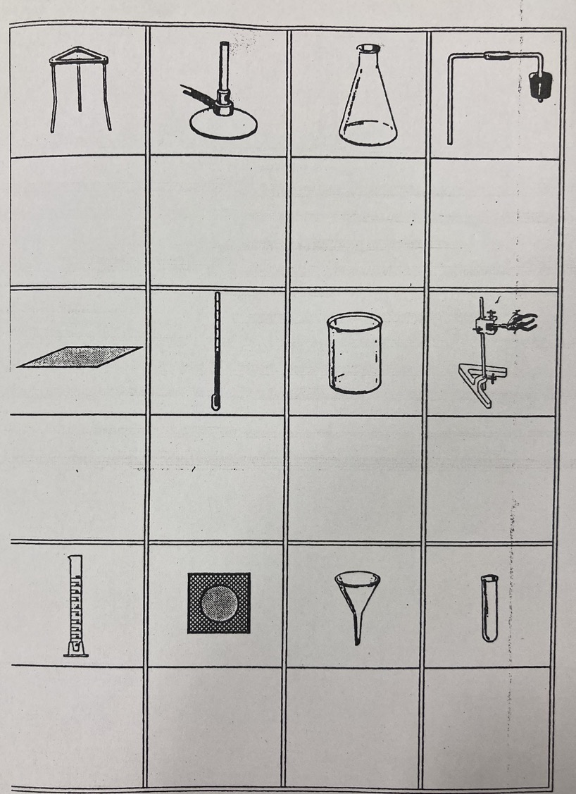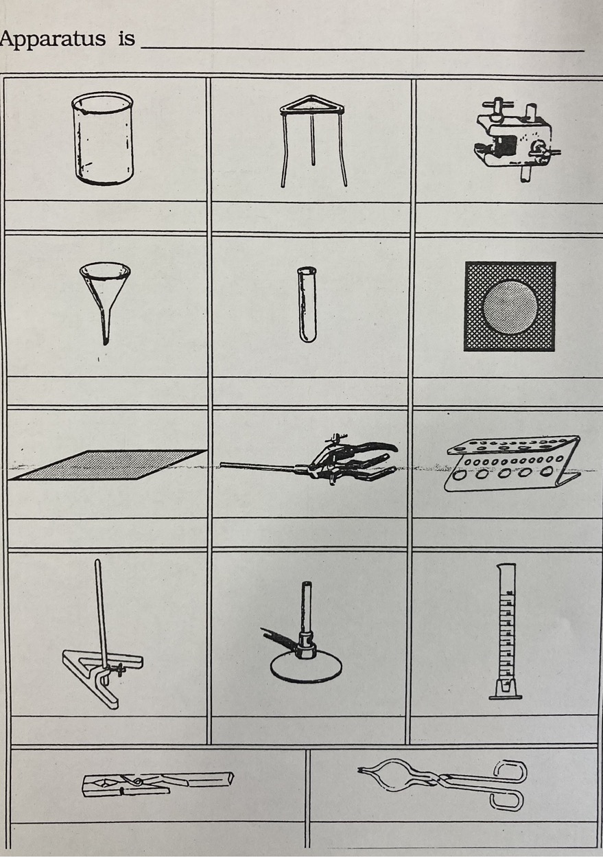 Collect an apparatus worksheet and fill in the missing names of the apparatus.